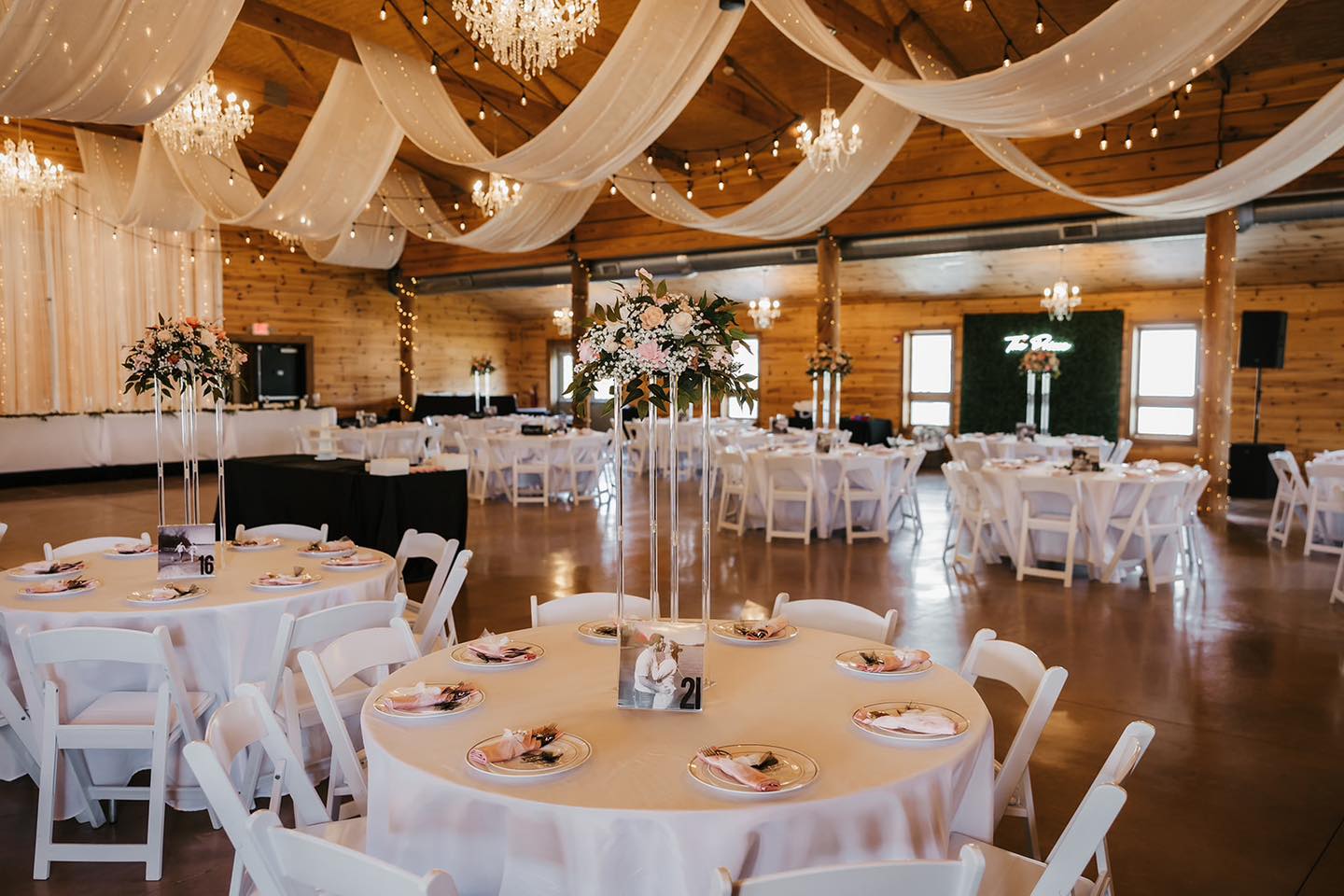 As you arrive, you’ll be greeted by the timeless allure of our barn, adorned with stunning crystal chandeliers that sparkle overhead. Whether you choose to exchange vows under the open sky or inside the beautifully appointed barn, every corner offers the perfect backdrop for your love story.